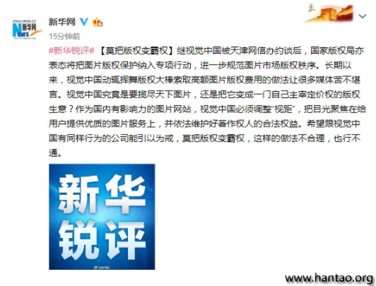国家版权局等也表态将开展专项行动,来整治这种打着版权旗号幌子做这样生意的行为。版权保护是好事,莫钻漏洞把好事办成了坏事,莫把版权变成了霸权。