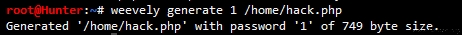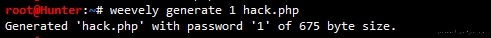 weevely generate <password>> [<path>>] filename