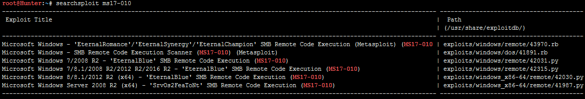 searchsploit ms17-010 #查找指定漏洞相关信息