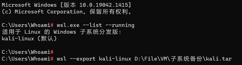 wsl --export kali-linux D:\File\VM\子系统备份\kali.tar导入文件