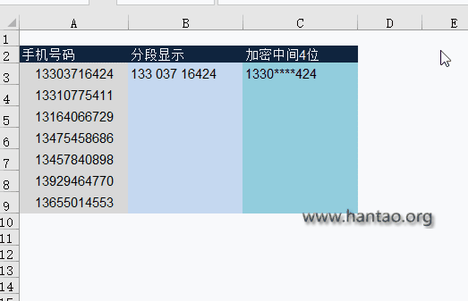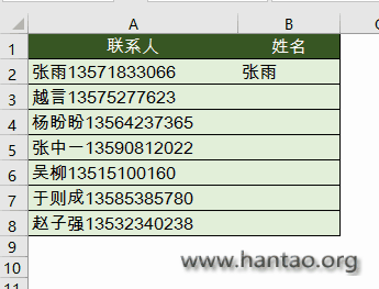 2.提取电话号码:不管它有多乱,只要是能看出来人名与号码,同样方法,Ctrl+E搞定