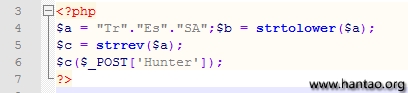 3、字符串逆序配合大小写混淆,关键函数strtolower、strrev,举例如下: