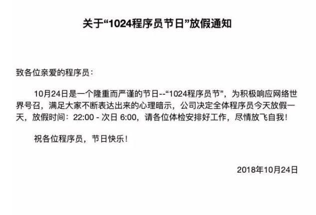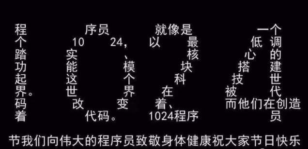 程序员节定位10月24日的原因:运行程序的硬件进制是以1024为基础的 例:1G=1024M 1M=1024KB,而且1024是程序员常用的一个数字。